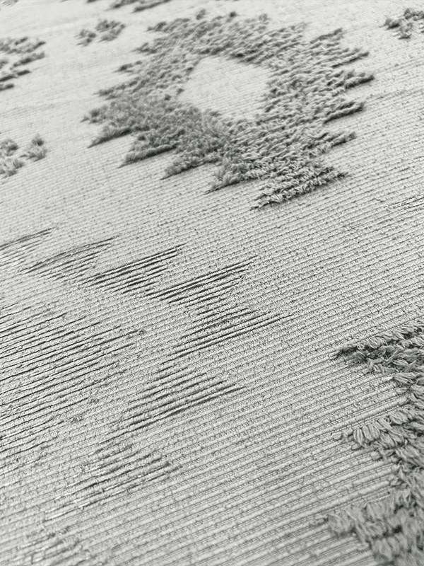 O padrão dos blocos de construção forma uma grande forma geométrica que mostra visualmente a diversão das crianças. O fio de pelúcia confere ao tecido uma sensação de pelúcia.